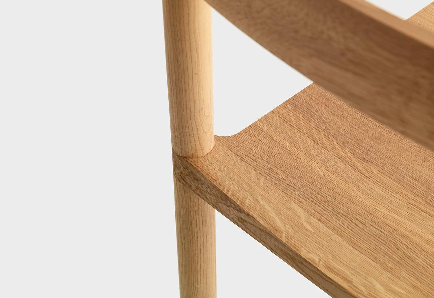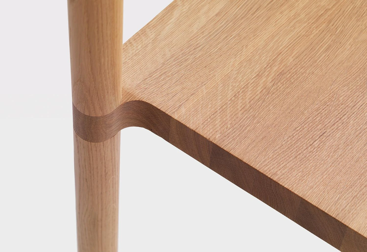 Inspired by the solid and vertical cylindrical pillars of pier constructions, the Pier chair is the new chair from Resident. Designed by Paris based designer Léonard Kadid, the chair is made completely from solid oak and features only tenon and mortise joints allowing the wood fibres to run continuously throughout. The seat and the backrest are carved using CNC rendering a comfortable seating position.