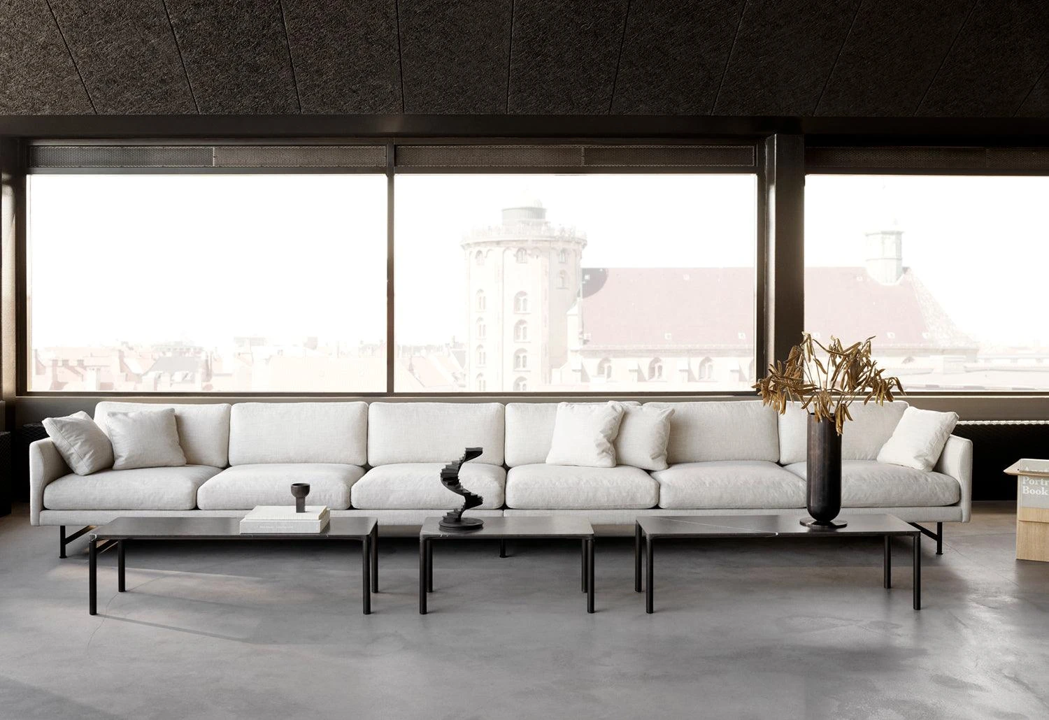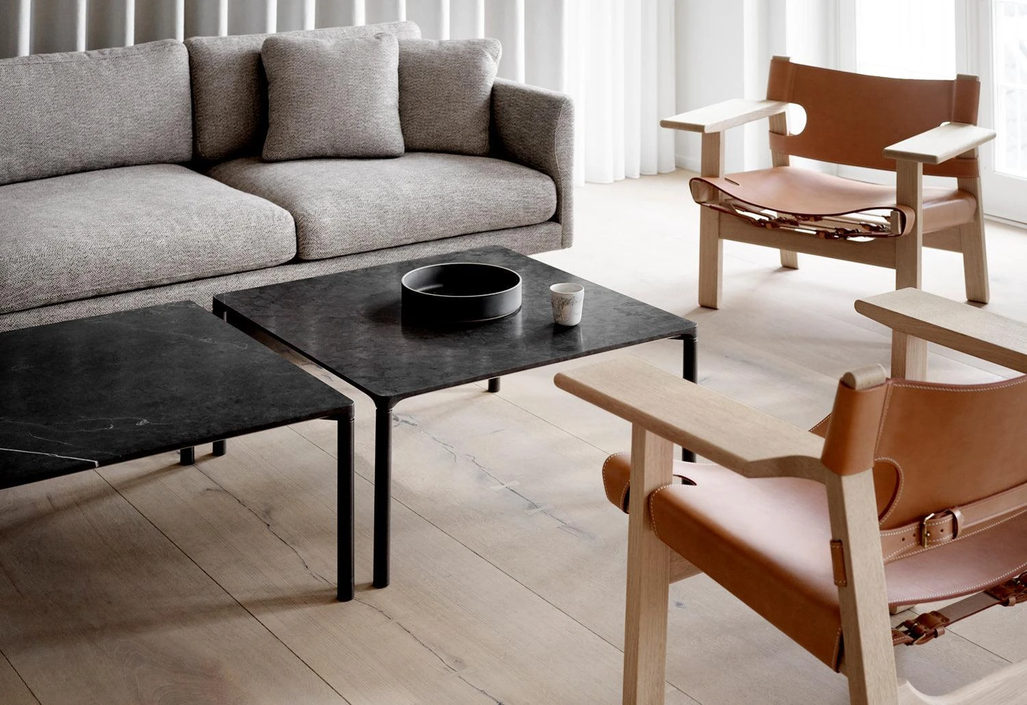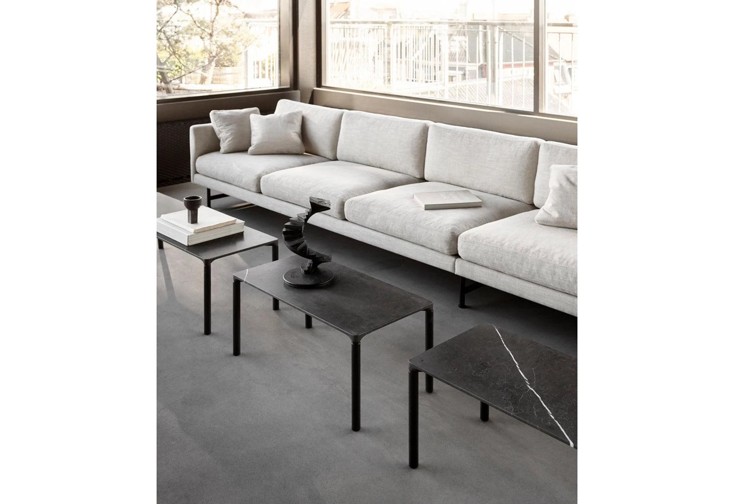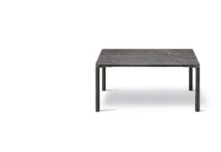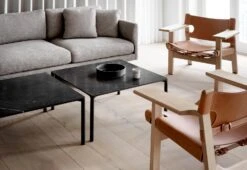 Piloti is a streamlined and elegant family of side tables. The subtle detailing of the design creates an impression of lightness, paring the table back to its simplest elements, while the use of solid oak as a material ensures robust stability. Adding to the family is the Piloti Stone tables featuring the same streamlined design in a steel frame with a stone tabletop. The refined marble top transitions seamlessly into the slender legs, giving an impression of elegance.