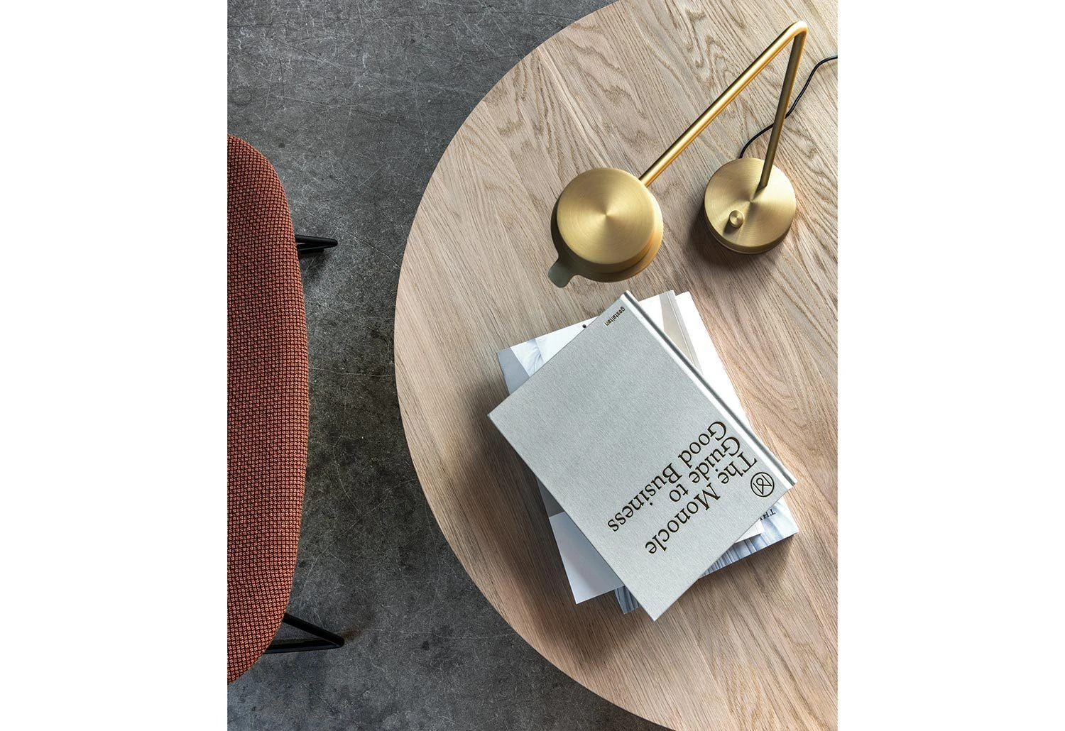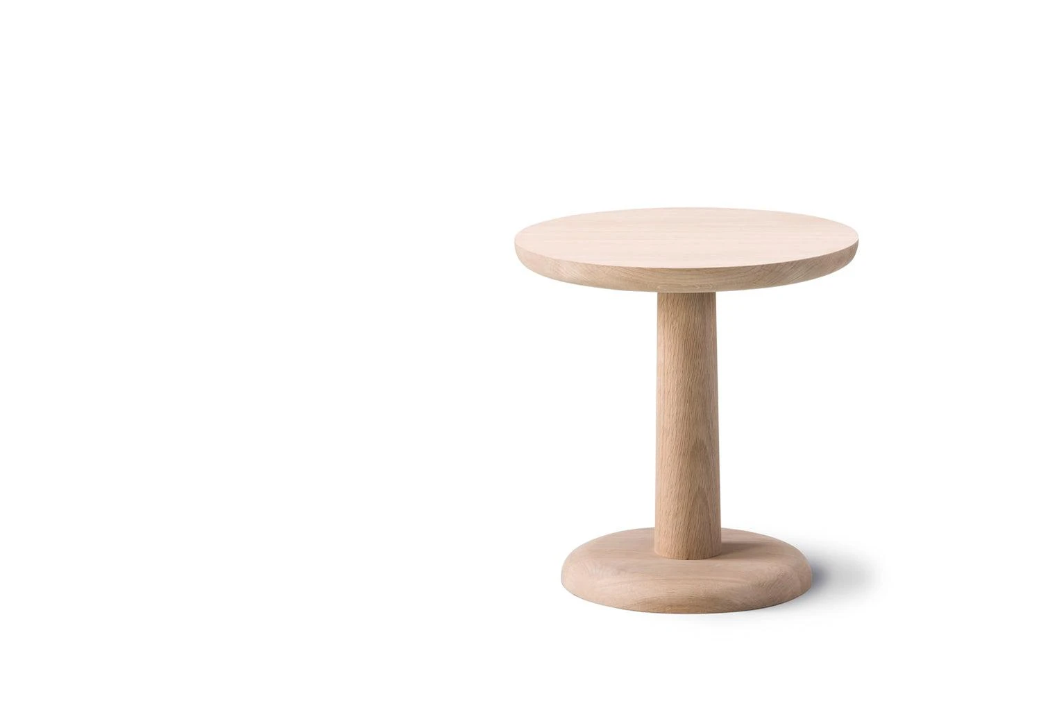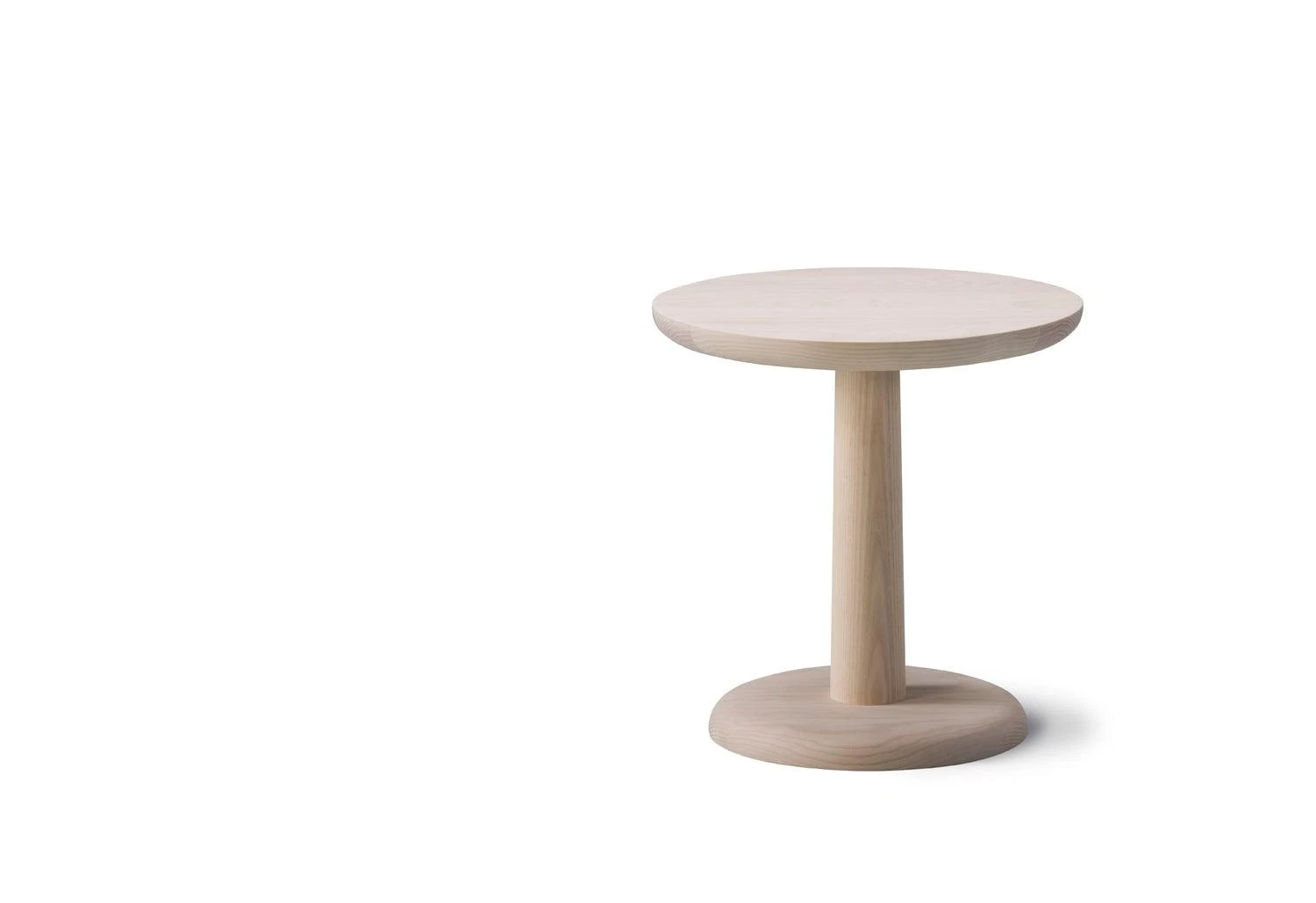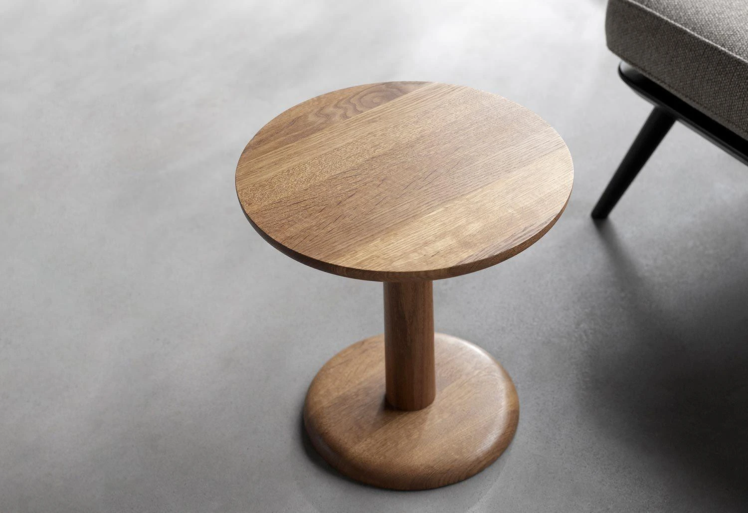 Pon is designed to present as a unified whole, with top, column and foot of the table integrated into a single form. This combines with the wood to lend the table a satisfyingly sculptural form.