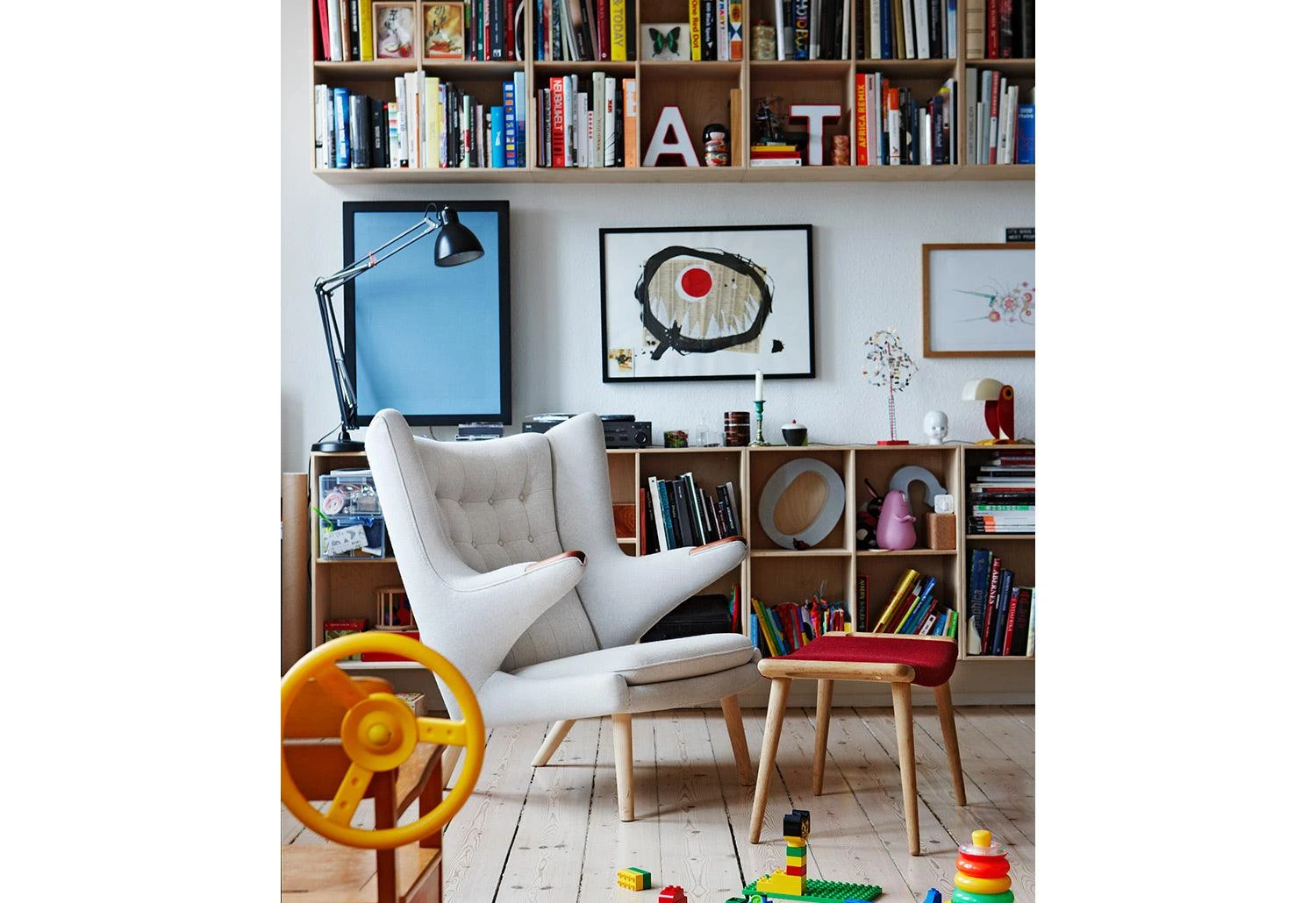 Although this footstool was designed as an accessory to the pp19 Teddy Bear chair, it accompanies the other easy chairs and lounge chairs from the PP Mobler range very well.