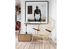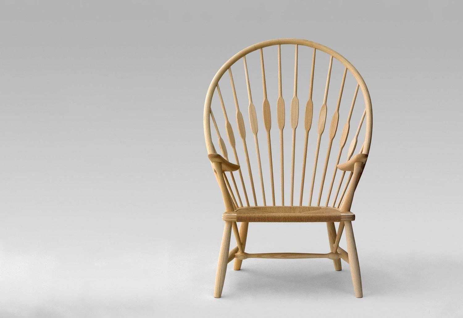 Despite this easy chair’s almost postmodern design, it was actually designed in 1947 and named the Peacock chair by Finn Juhl. Its modern lines are not only a matter of looks but also a feat of ergonomic aesthetics. The flat part of the sticks, which give it the peacock-like appearance, are placed where the shoulder blades meet the chair’s back. The chair was inspired by the classic Windsor chair.