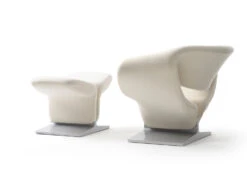 The Ribbon chair almost resembles a sculpture with its delicate ribbon-like form. Designed by Pierre Paulin in 1966, the chair features an innovative metal frame with horizontal springs wrapped with soft foam and stretch fabric. The base is constructed from lacquered pressed wood. The chair is perfect to be the centrepiece of any living space.