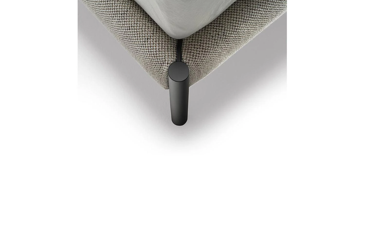 The Ricordi bed features a minimalist design which is genuine and necessary, simple and authentic. Its simple structure is accompanied by flawless details and quality finishing resulting in a product made to last a lifetime. The padded headboard provides support when reading. The metal horizontal rod and the feet are finished in matt black paint, blending smoothly with the natural or black-stained ash of the vertical uprights and the structure covered in fabric.