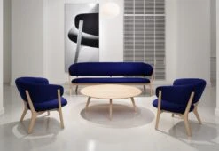 The Roundish family of seating comprises a two-seat sofa, a three-seat sofa, an armchair and a chair. Upon its launch in 2014 the Roundish sofa was awarded one of Japan’s national Good Design Awards.