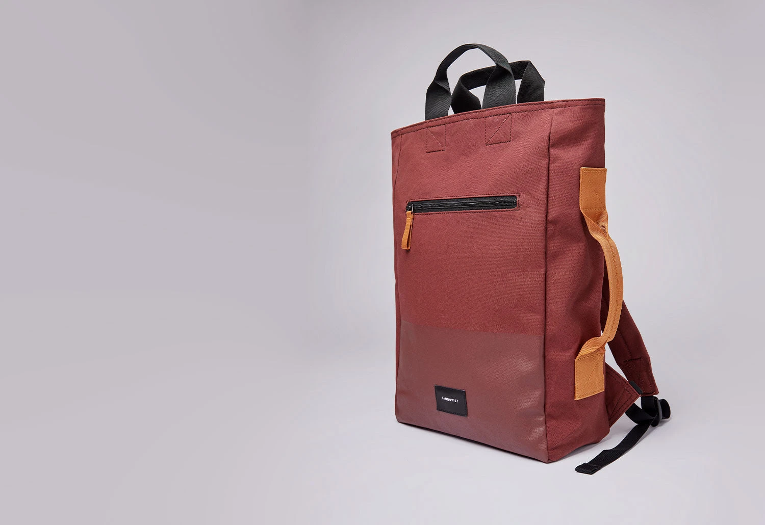 The classic, minimalist Tony backpack by Sandqvist is now available with vegan details. Made from an organic cotton and recycled polyester mix, the backpack/tote bag hybrid is elegantly finished with with details in vegan webbing. The practical design features a 15″ laptop pocket and functional side and top handle, perfect for the daily commute.