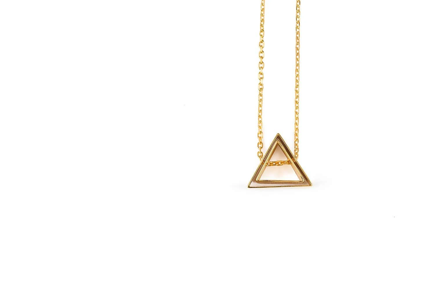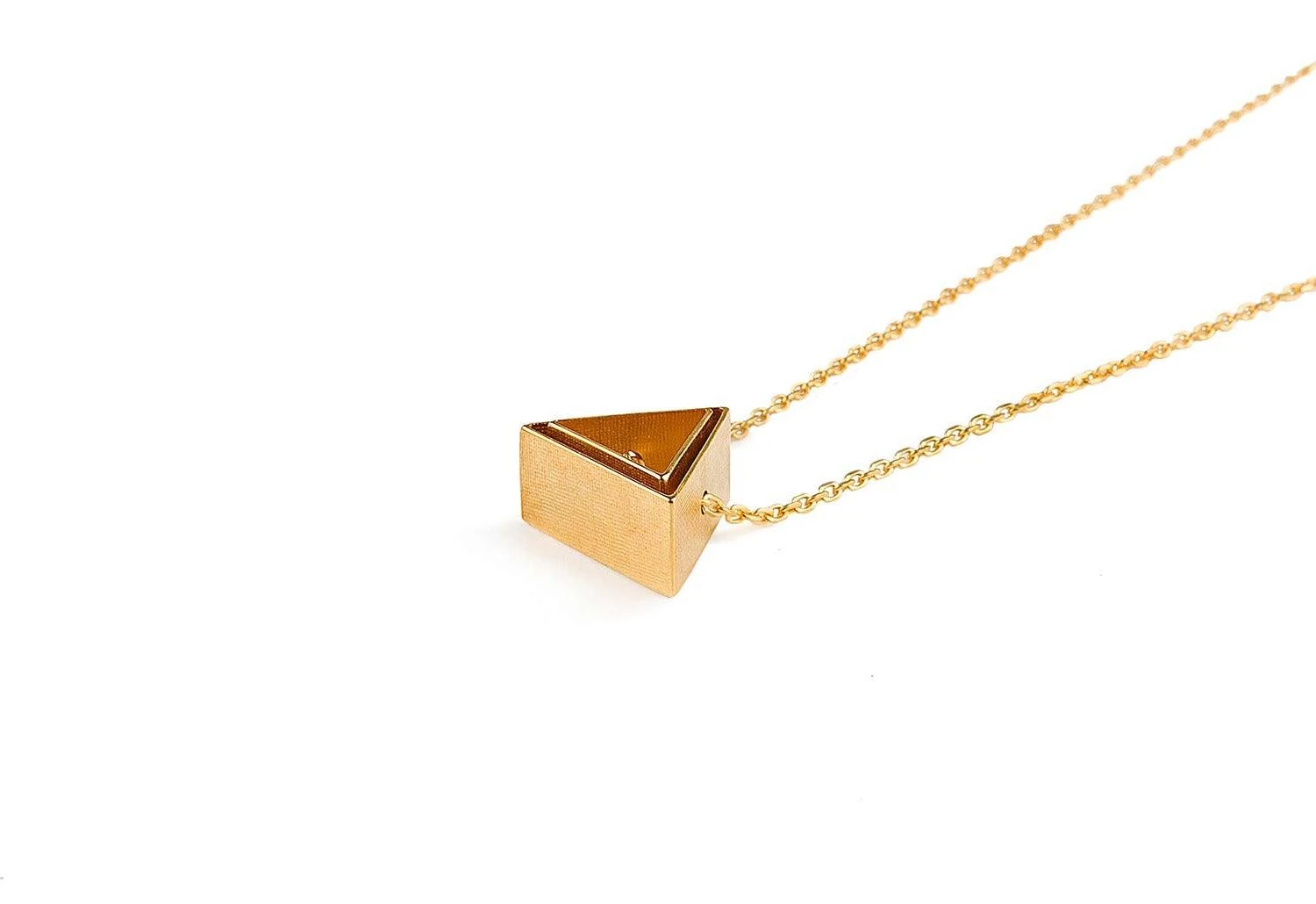 Inspired by everyday objects and texture’s Kei Tominaga’s jewellery designs are characterised by a delicate lightness. The Shape in Shape necklace includes two hollow shapes, one suspended inside the other.