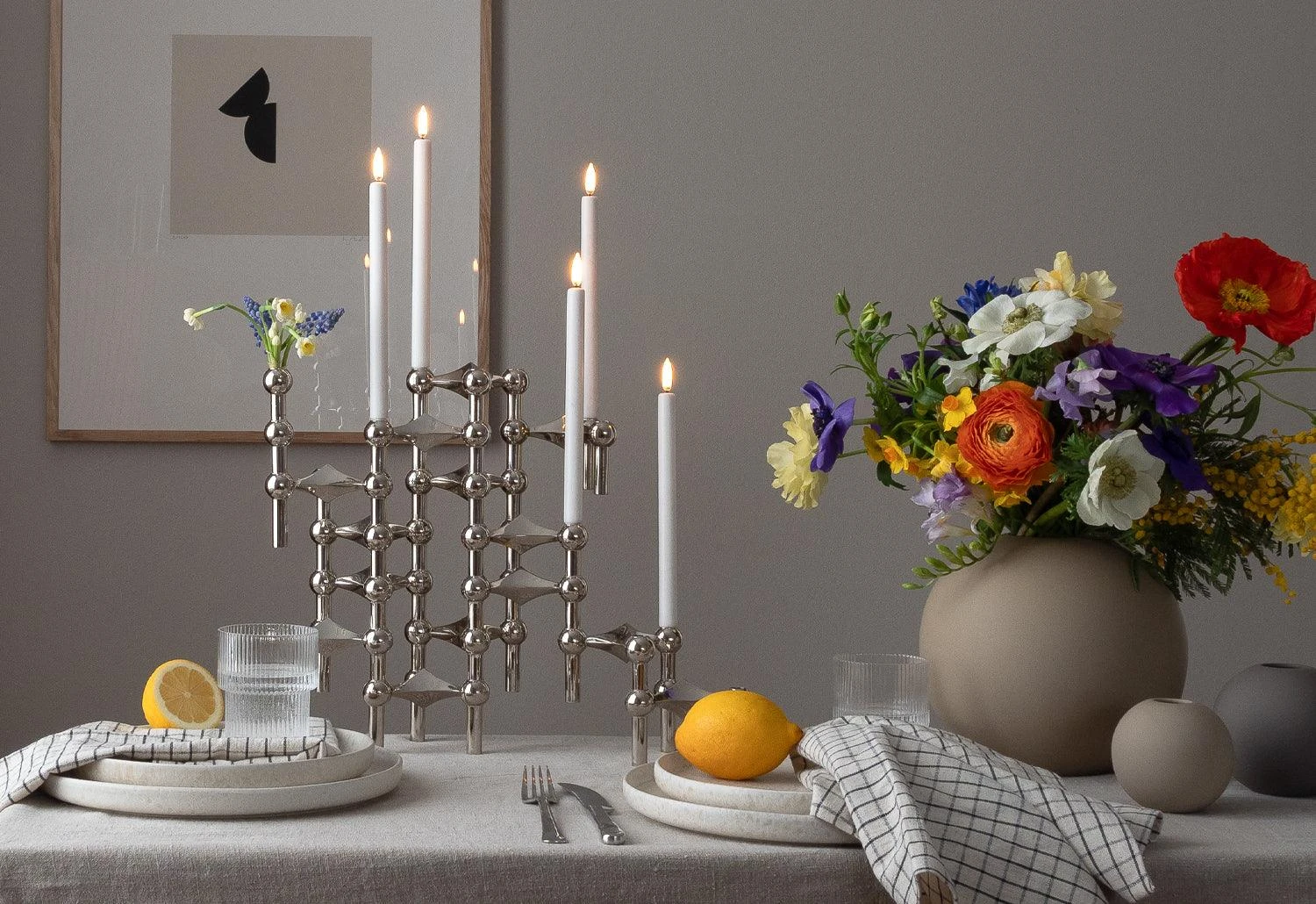 The Stoff Nagel candle holder system is a classic of mid-century design, conceived by German architect Werner Stoff in the 1960s.