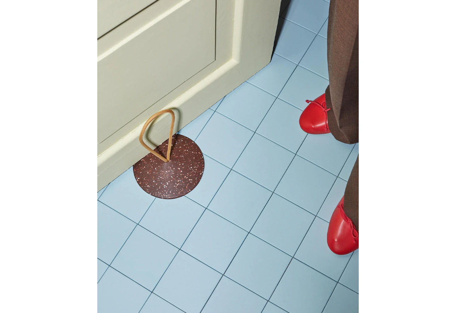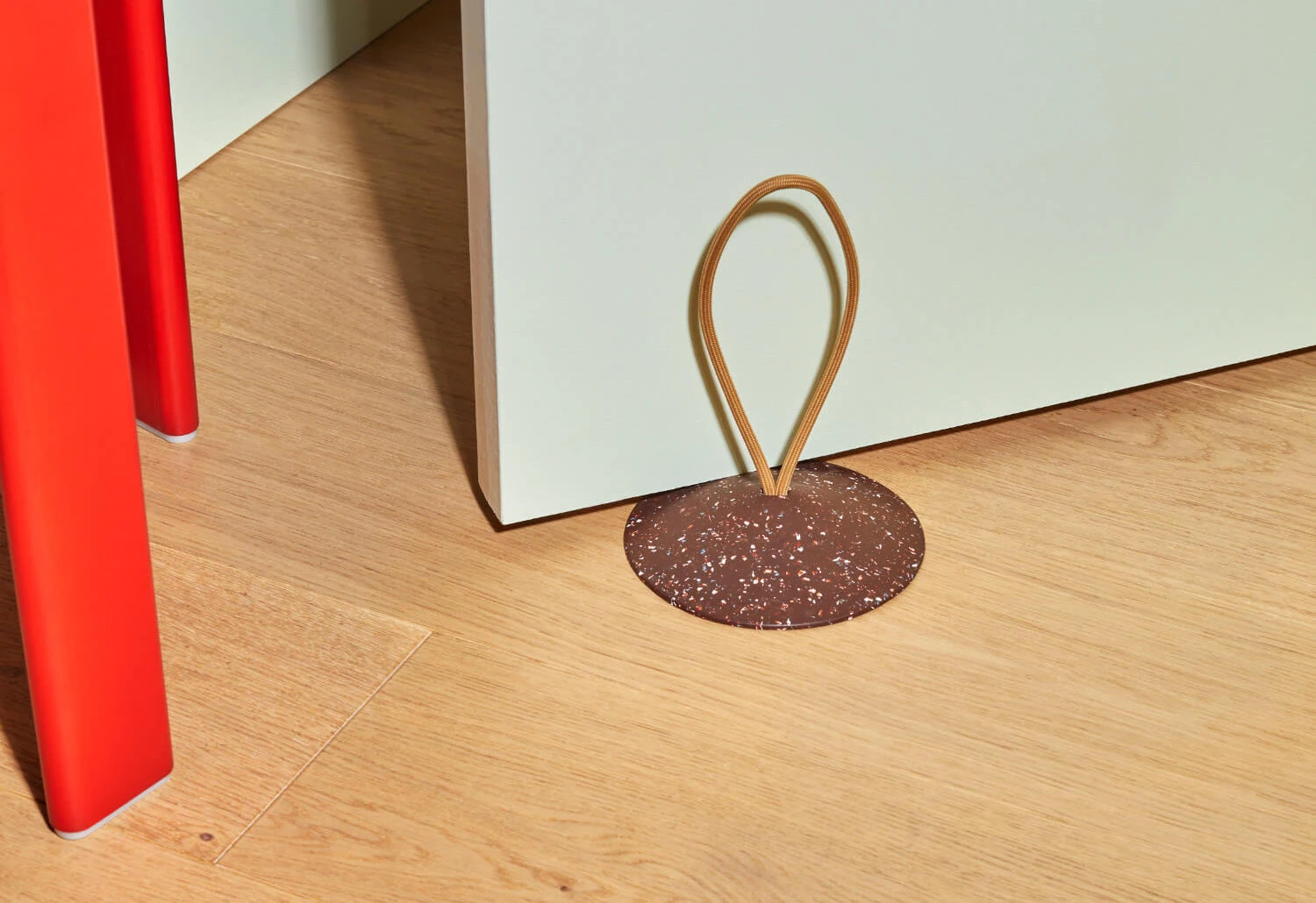 Unlike standard wedge-shaped doorstops, Stop has a unique flat-coned form, making it easier to use. The shape also means the doorstop is not hidden when in use, thus creating it an exciting design feature in your space.
