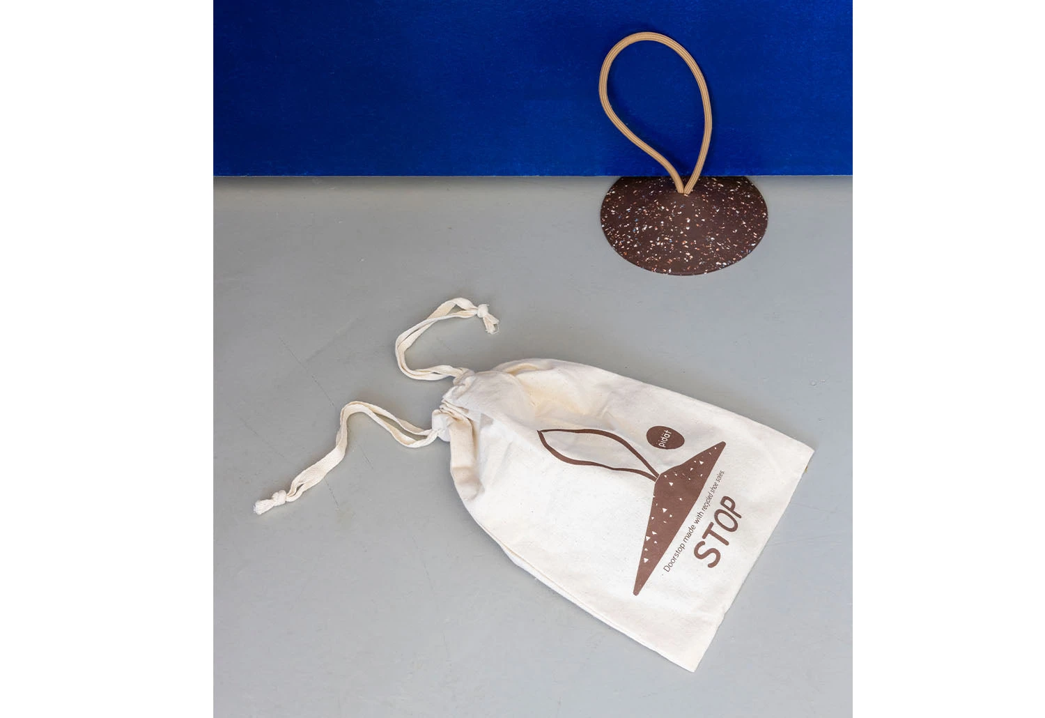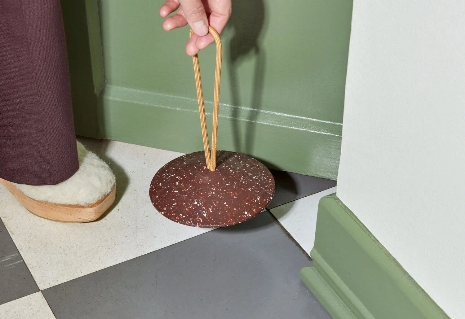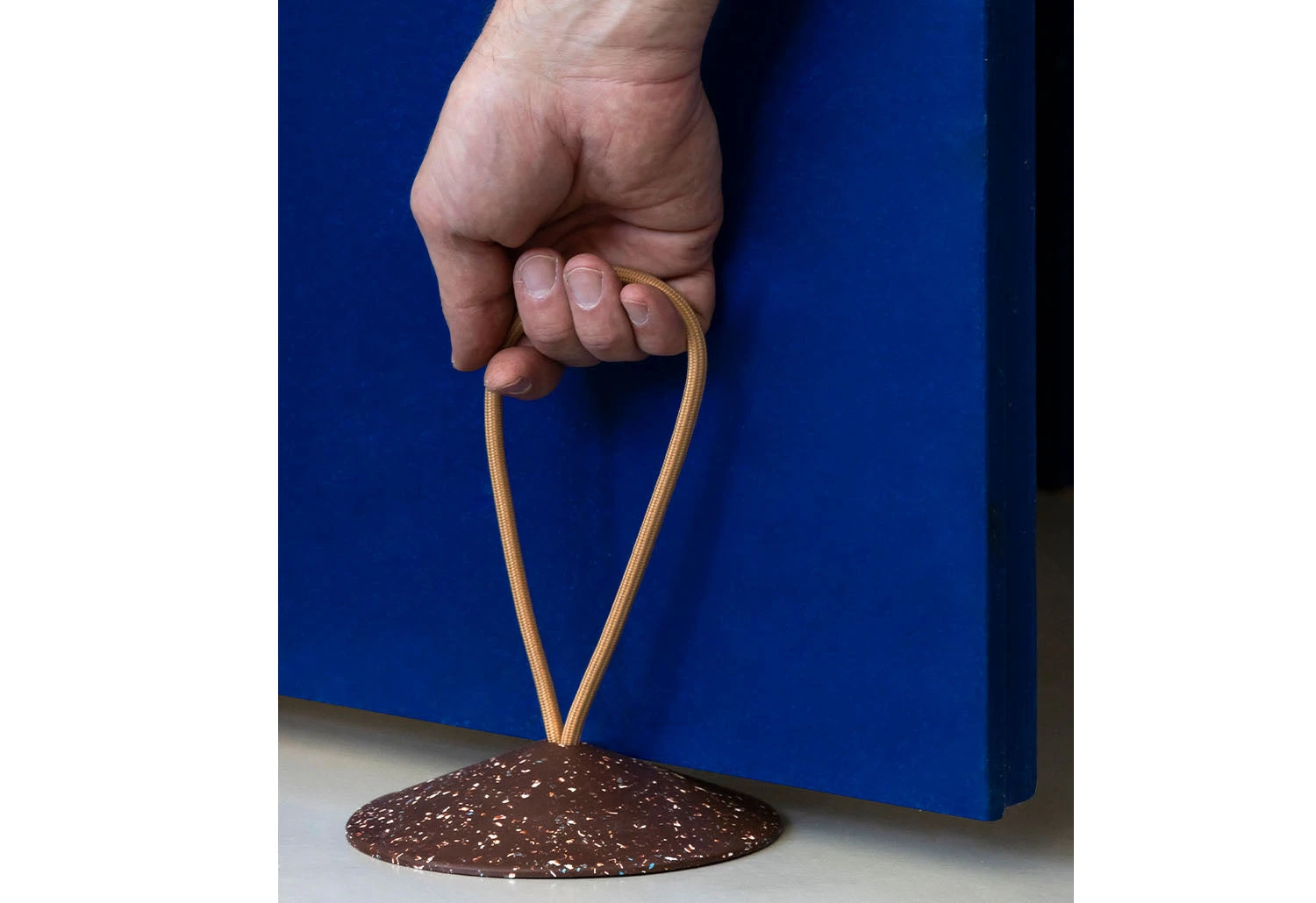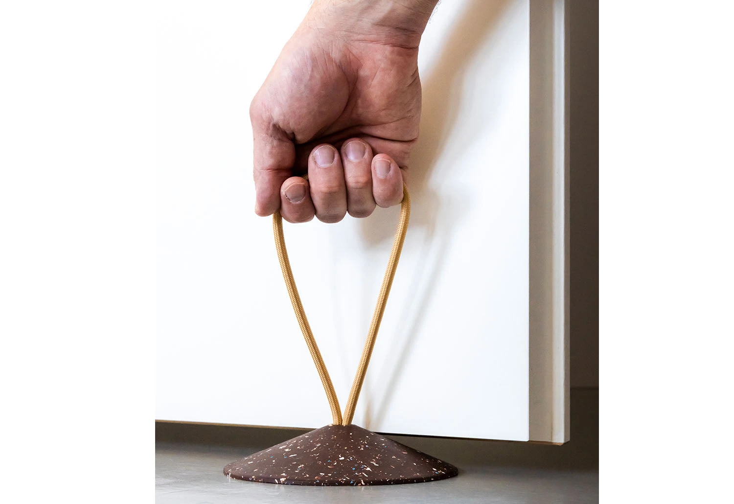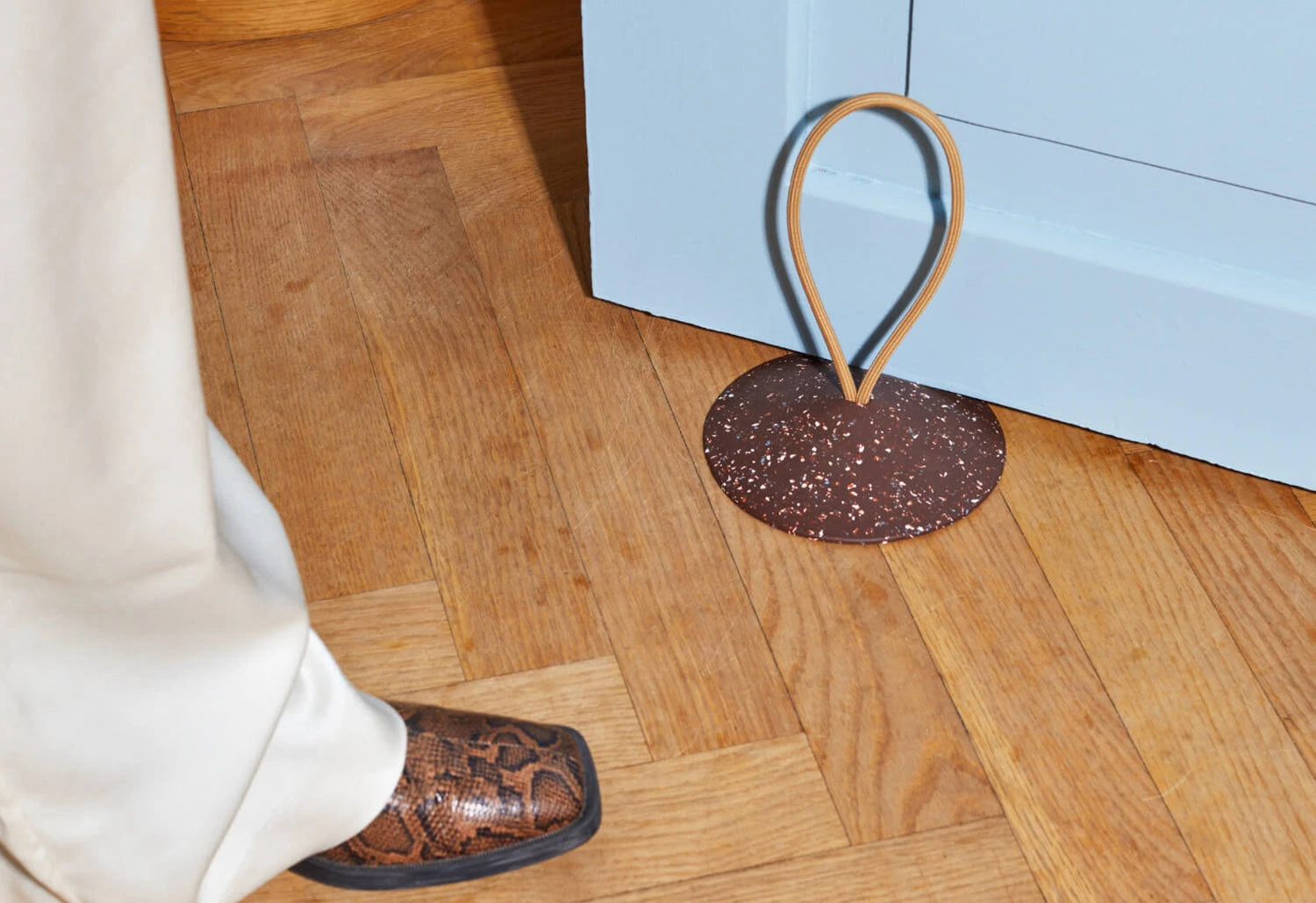 Designed by John & Wonhee Arndt of STUDIO GORM, Stop is an innovative doorstop made from discarded shoe soles. The studio chose the material due to its durable and slightly flexible properties, which are ideal for use as a doorstop.