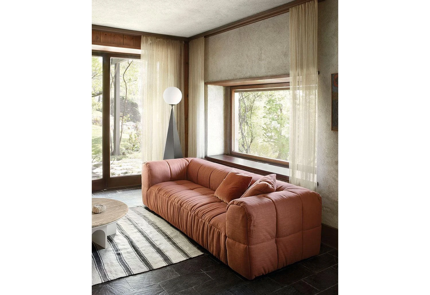 The comfortable Strips sofa has a removable quilted cover and the collection includes a wide range of sizes. (Non-removable cover for leather upholstery).