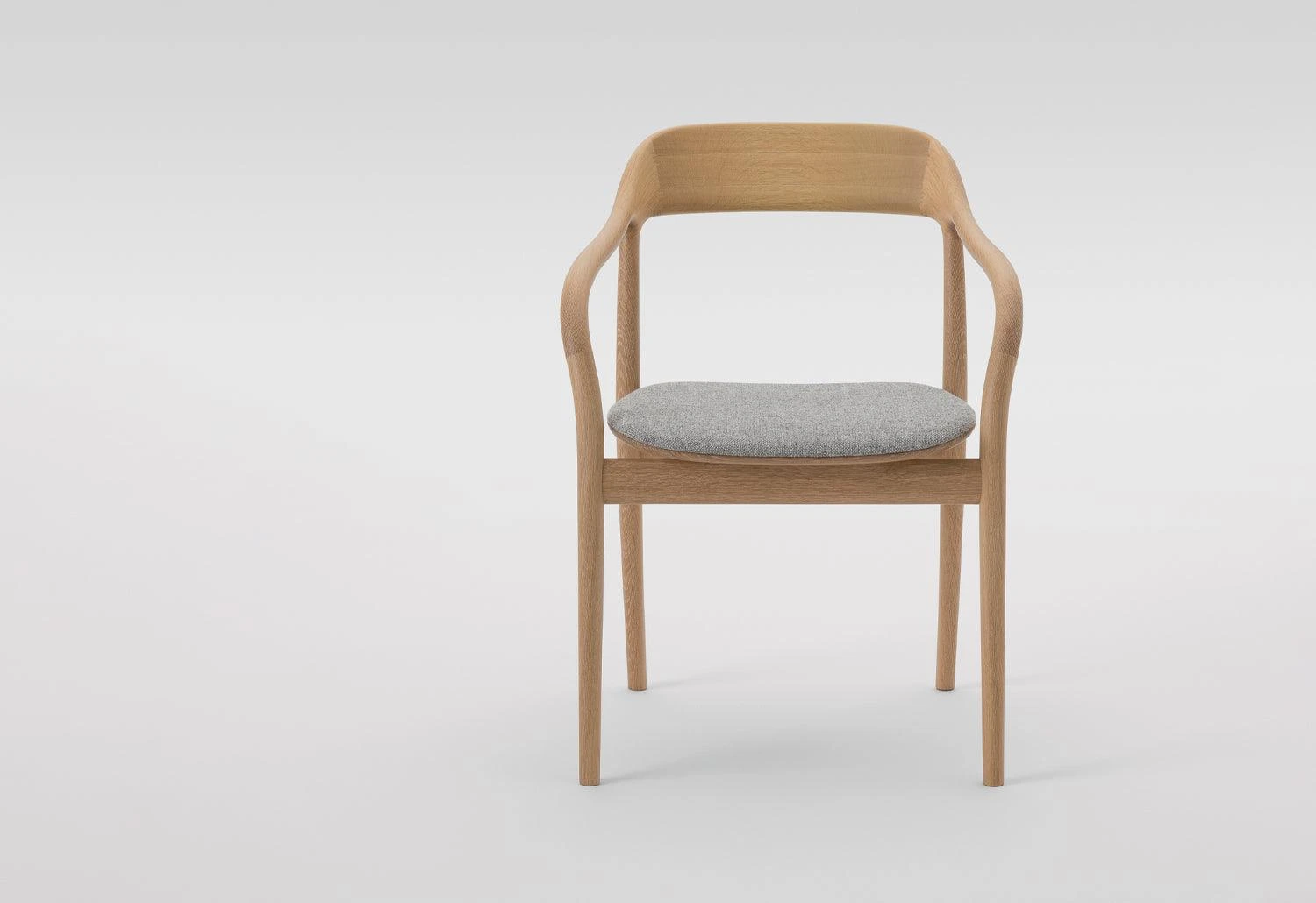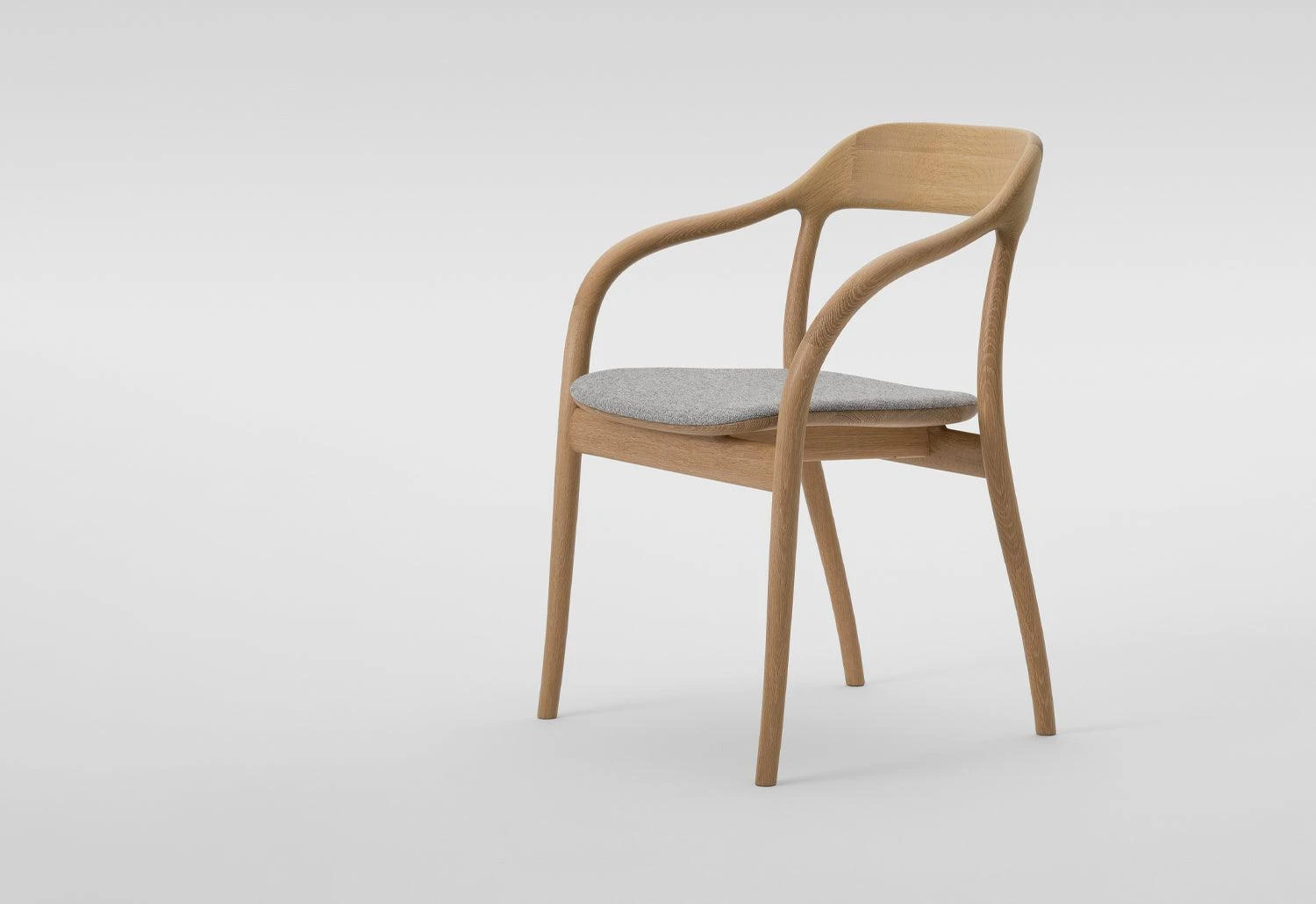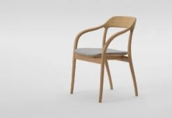 Machine-cut wood has been used to create the sculptural form of the Tako Cushioned Armchair. Seamless joints and a thin upholstered cushion are a few of the finer details in this expertly crafted chair.