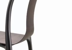 The plastic and wood sidechair and armchairs are stackable up to six chairs. Also available with upholstery in fabric and leather here.