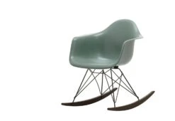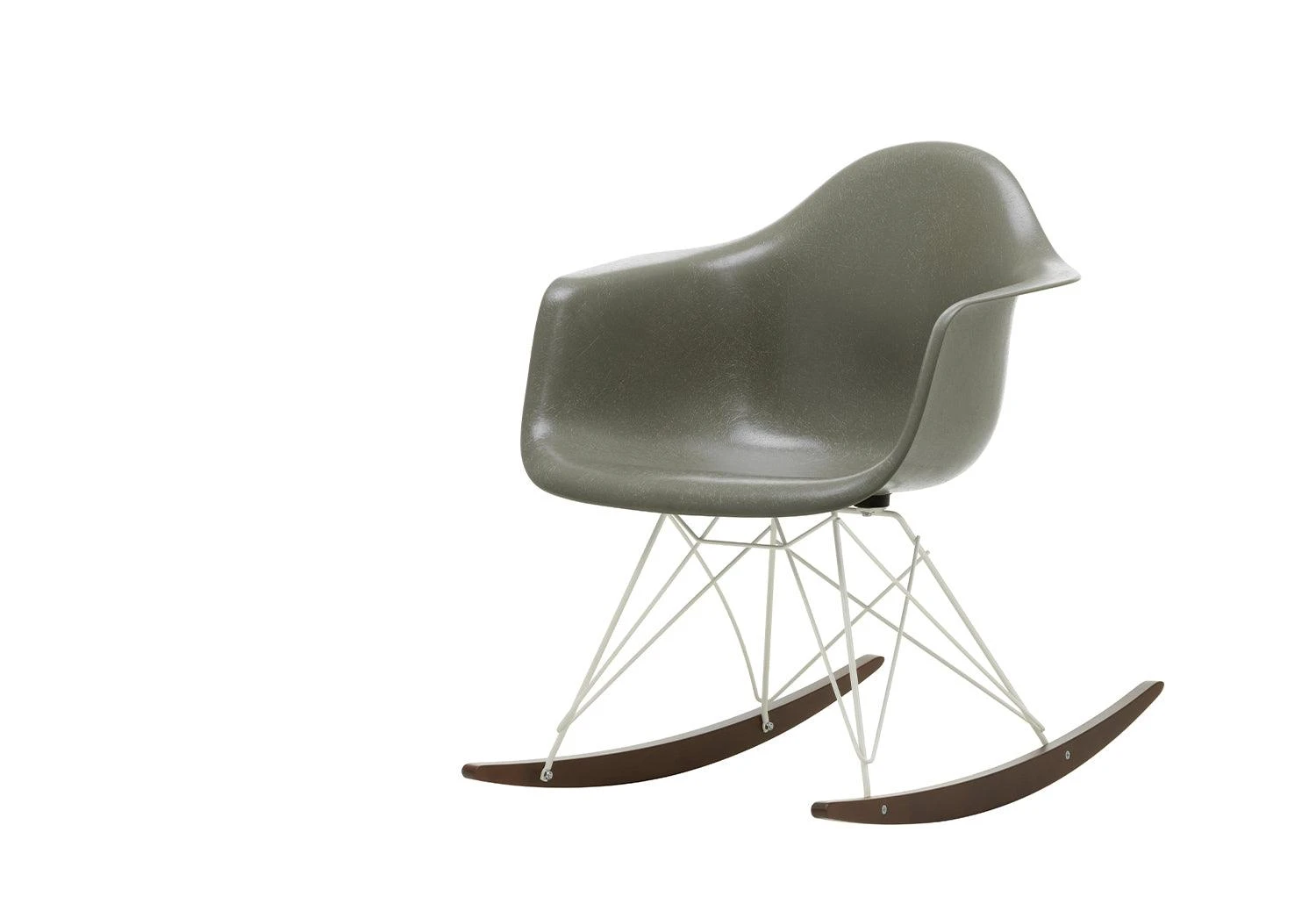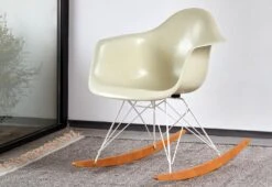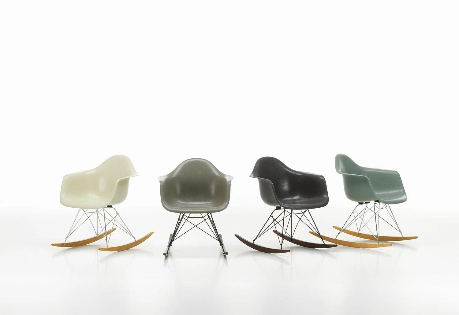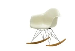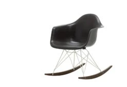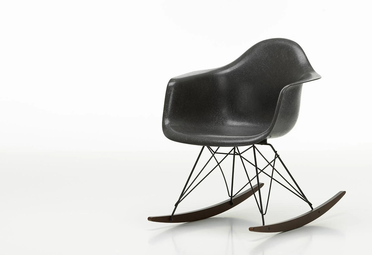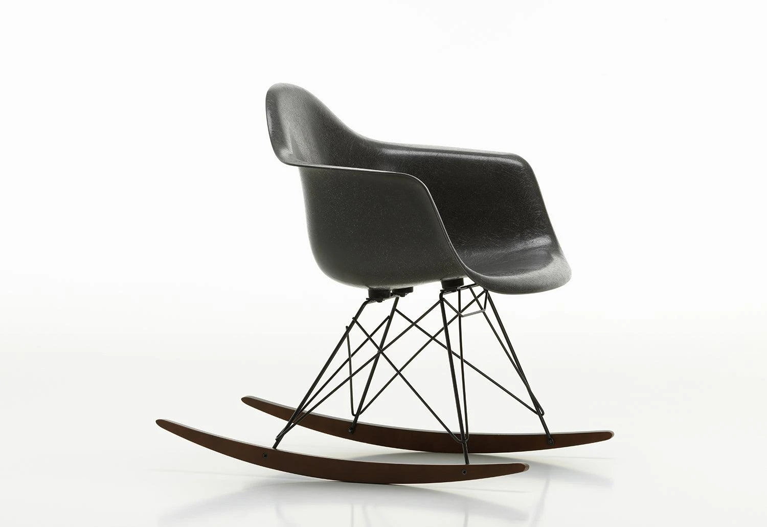 This led to them using glass-fibre reinforced polyester resin, which until then had been primarily restricted to military applications such as aircraft radomes and cockpit covers. The RAR armchair features dyed-through, glass-fibre reinforced polyester (fibreglass) similar to the earliest models. The base features a wire base with cross struts with solid maple runners available in a dark-maple or golden-maple finish.