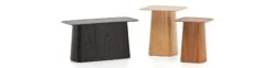 In their shape and construction, the Wooden side tables correspond to the Metal side tables created for Vitra by the Bouroullec brothers in 2004. They are light enough to be easily moved around the home and serve a wide variety of purposes. With a distinctive voluminous, plinth-like base and thin table top, they are both elegant and functional.