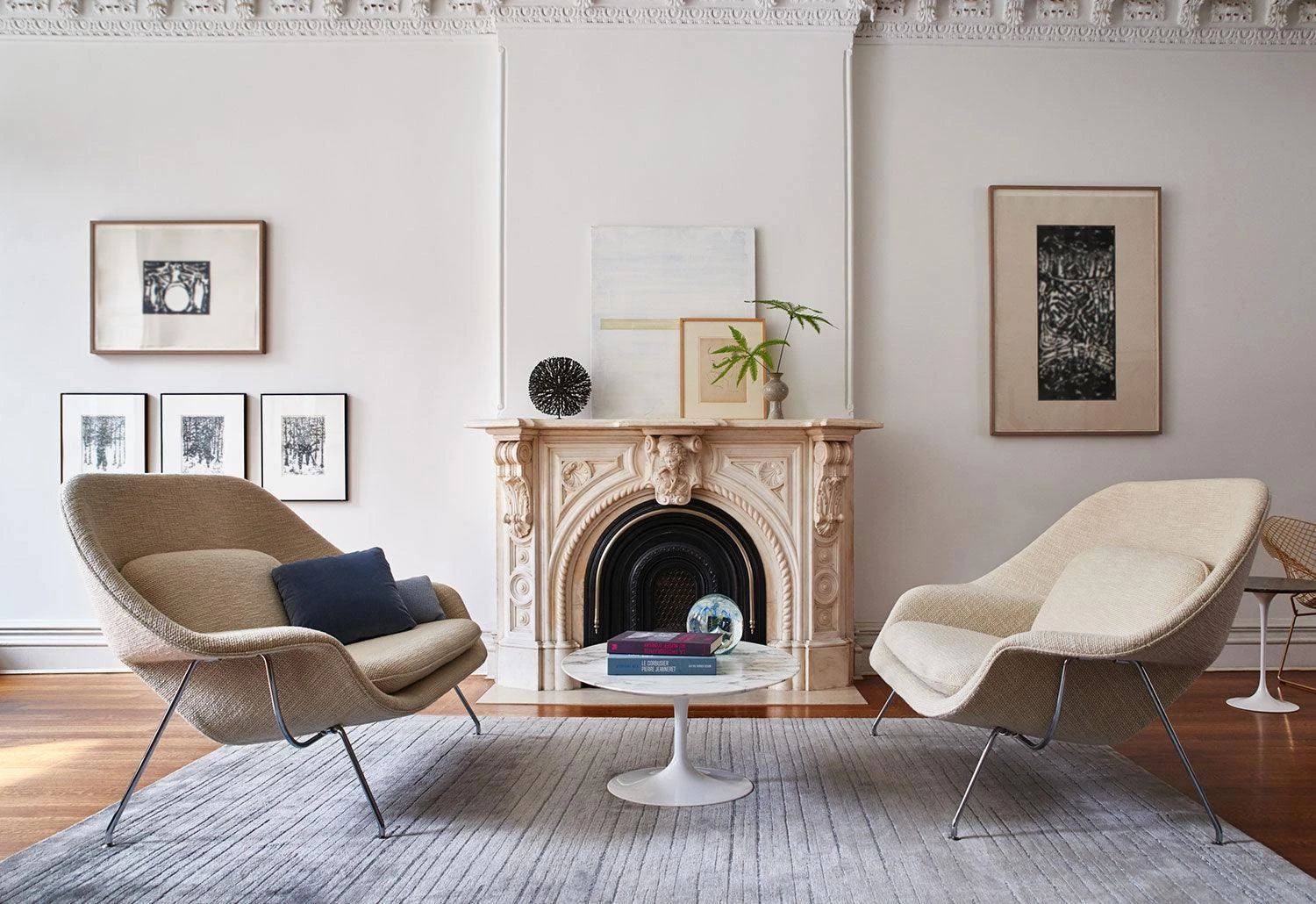 The Womb Sofa was designed to replace the clumsy, oversized sofa models of the time, Saarinen wrote: “These dreadnaughts [have] disappeared from modern interiors partly because they were designed for an era that tried to impress by sheer mass.” While such robust forms may have gone out of vogue, Saarinen saw their necessary function as timeless: “The need for such chairs has not passed. Today, more than ever, we need to relax.” After being out of production for six decades, Knoll brought the Womb Settee back into production in 2015.